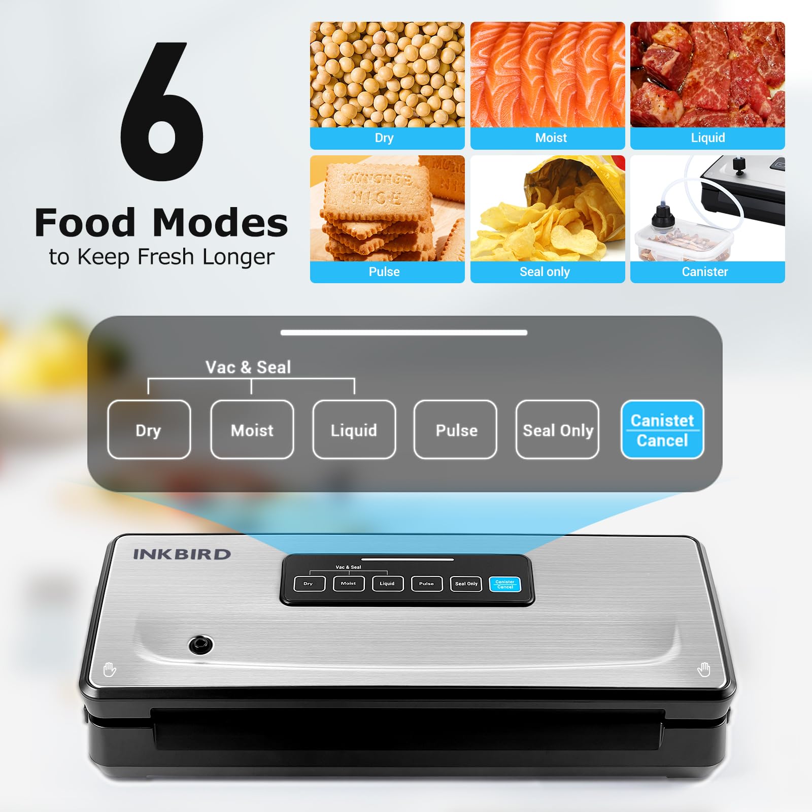 INKBIRD Vacuum Sealer Machine with 5 Vacuum Seal Rolls(Total to 110ft) and 8''*12'' Food Sealer Bags*5, Compact Food Sealer Machine with 10-In-1 Easy Option for Food Preservation,Sous Vide