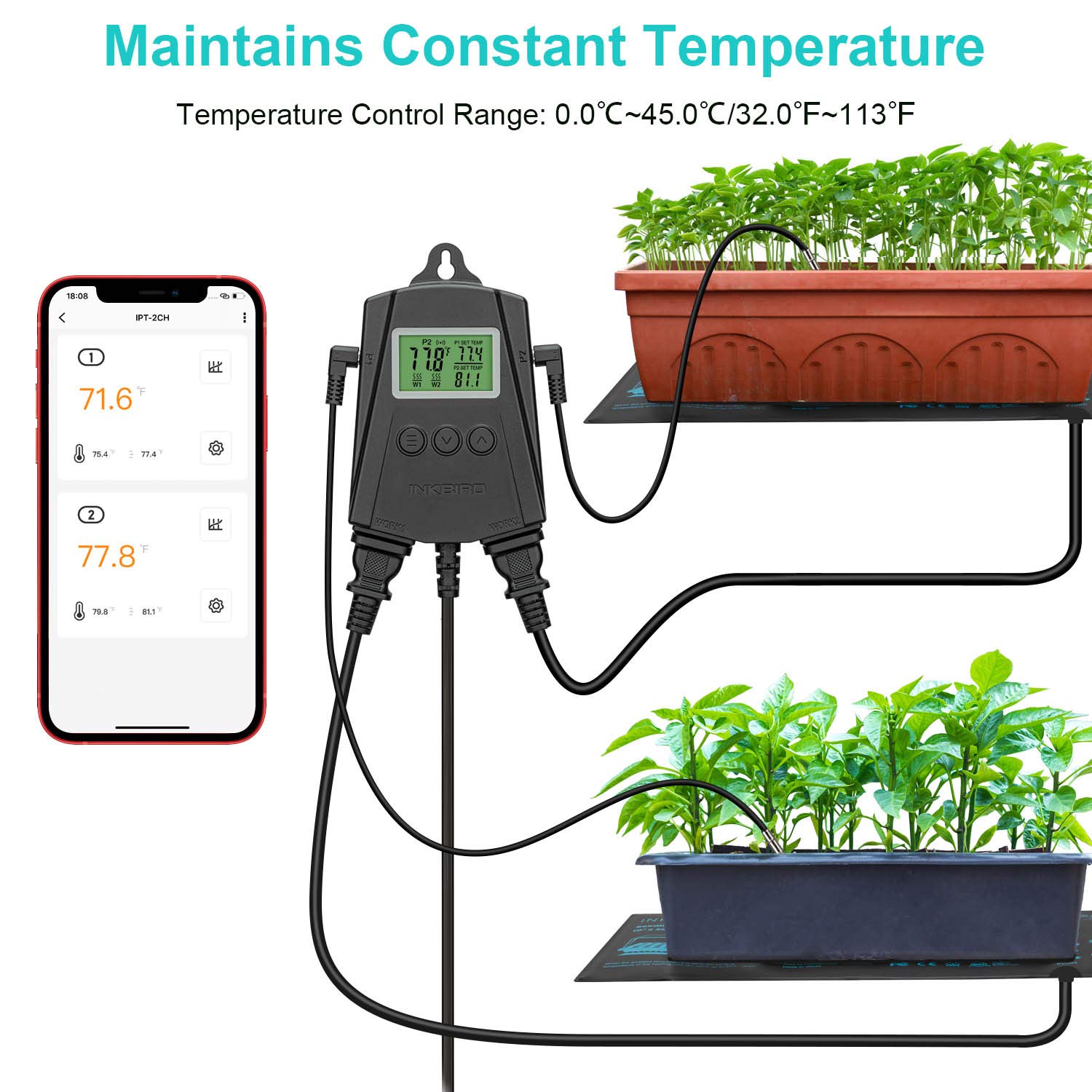 - With this heat mat temperature controller, data charts or data exported, high and low-temperature alarms, and probe error alarms are available via the INKBIRD app