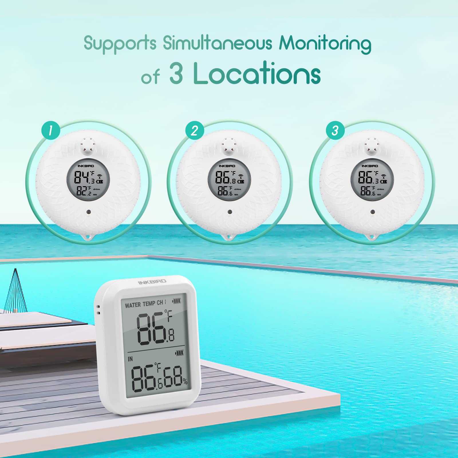 Inkbird Wireless Pool Thermometer and Receiver Set, Updated Version Floating Thermometer with Easy Read Display, Thermometer for Swimming Pool, Hot Tub, Hot Spring(Battery not Included)