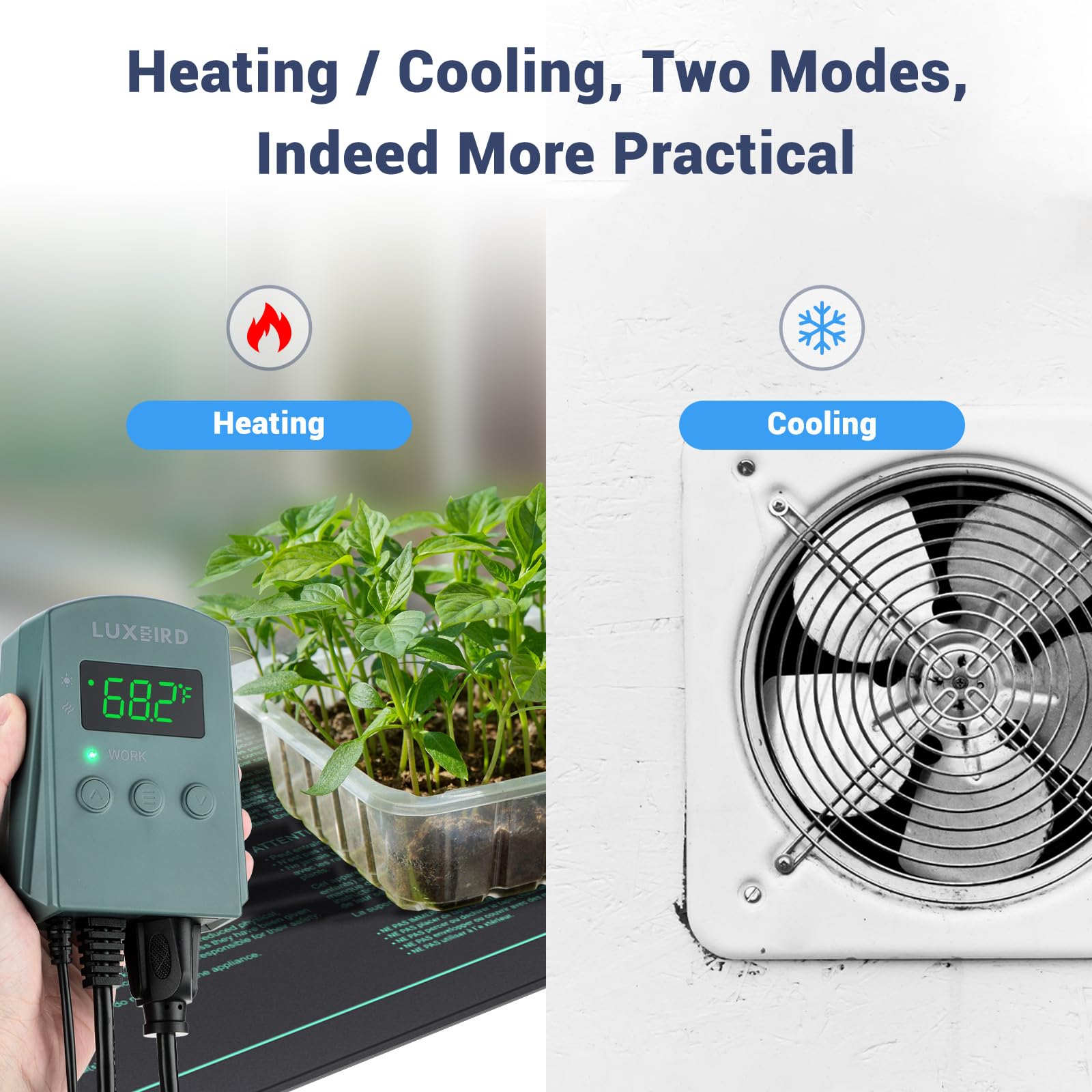 LUXBIRD Digital Heat Mat Thermostat Controller Heating Cooling 10A 1200W for Seedling, Reptiles and Brewing, Breeding, Incubation, Greenhouse, Fans, Cooling Device, 32~113℉ FCC-Certified—